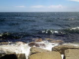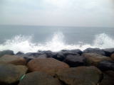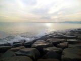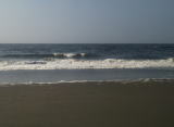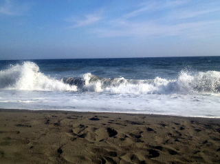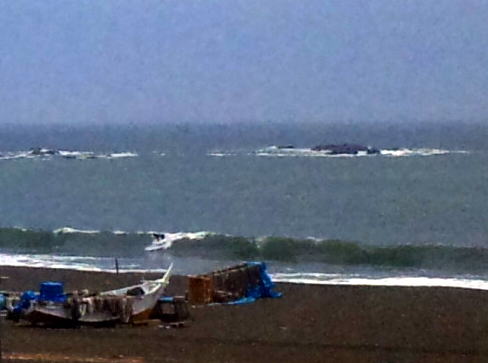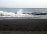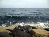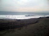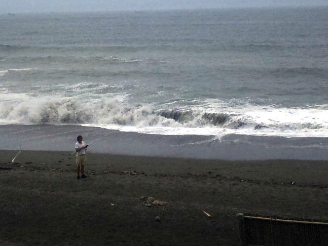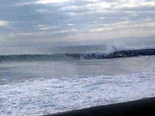 ■うねりが続く西浜海岸 ●石積みは高波がかぶり、西浜〜柳島海岸にはうねりの波が寄せていますが、沖にはほとんど波がありません。(※左写真は石積みの最東端の浜に、高波が押し寄せた様子です。)うねりの波は5〜6色沖で持ち上がって徐々に大きさを増しながら岸にたどり着きます。そしてそのパワーはものすごく、テトラポットを動かすほどの力があります。こんな波をかぶってしまったらひとたまりもありませんので、石積みには近づかない方が無難だと思います。 ●浜も波が高く釣りにはならないと思ったのですが、数人の釣り人が投げていたので、試しに遠投してみたところ6〜7色沖合では、ごく普通にキスのアタリが出ていました。しかし連掛けを狙っても追加できず、掛かってくるのは一番上の針に一匹のみで、ゆっくりさびくと下針にフグが食ってしまいます。この距離で、単発…サイズも12〜15センチクラスなので、結構厳しい状況でした。 【0/383+pin4/766..=4/1149】 |