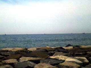 ●浜のチョイ投げで釣果はボチボチと出ていましたが残念ながら一時間ほどするとフグとヒイラギが多くなってしまい茅ヶ崎港へ移動してみました。サザンビーチは海水浴場の沖のブイもきれいに張られ、海の家も建ち並び海開きの準備がどんどん進んでいました。
