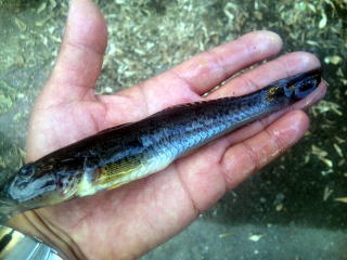 ●数匹『ハゼの洗い』用に店の小さな水槽に入れてみました。 |