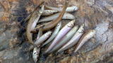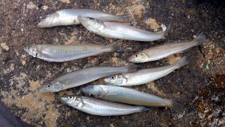 | ■ヒイラギとイワシがいっぱいで… ●釣行時間が昼過ぎからの1〜2時間は、連日のように南からの風が強く時々大きな波が襲いかかってくるかなりキツイ状況でした。ヒイラギの入れ食い状態ですが、潮によっては全然喰わなくなりました。肝心なキスも… ●21日:雨の後でヒイラギ多すぎ。浜はイシモチ、シコイワシを狙う方が多数。イワシいっぱいいます。 ●22日:多少サイズアップして、15〜17.5センチでしたが、アタリが小さく微妙です。ツヌケできず9本で時間切れしました。 ●23日:15センチほどが4匹のみ。食いが浅く活かして飼育用にと思っていましたが海水温度があがってしまいダメでした。 ●24日:反応全なし |