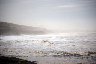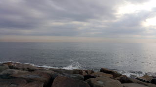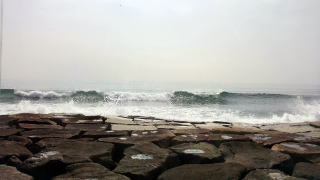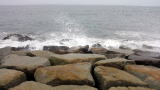 ●移動しながら数カ所探っていると、取り込み中にいきなり立ち上がったハイパワーな波が岩に当たり、腰から下まで大波をかぶってしまいました。寒い風の中ずぶ濡れになってしまい、時間はまだまだあったのですが半べそをかきながら中止しました。。。