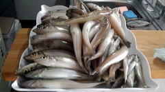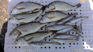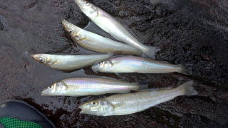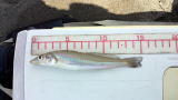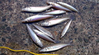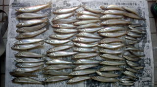 数が伸びないので浜へ行ってみましたが、アタリがあっても針掛かりしない状況が何度もありました。17センチ頭で、数もシブくなりました。 |