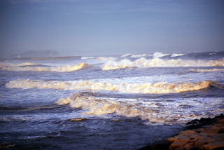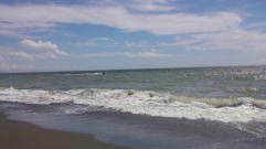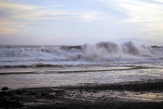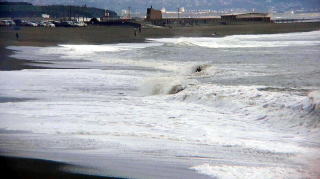 ■昼から強風!風速12メートル以上に! ●朝方の西浜は昨日より凪ぎの様に見えたのですが、行ってみると波足は長めで時々大きな波が立っていました。