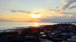 ■釣り船は烏帽子西側へ ●石積み沖にわりと多かった釣り船が今日は大きく東へ移動していました。潮の状況も変わったのでしょうか。そんな影響は多少あるのか石積みにいた常連さんたちも皆さん『ダメ〜』といっていましたので、今日は浜へ行ってみました。●浜へ出ると潮風に乗って川の臭いがしていて、濁り気もあり潮は今日もかなりはやめで期待感はほとんどありませんでした。 移動を繰り返しながらやっと食ったのは5色半で16センチ位のピンが一匹のみ…フグやヒイラギの外道の反応さえまばらしか有りませんでした。6色ほどでイイ感じで当たったのは舌平目の子とフグ。・・・ ●その後石積みへ戻りしましたが、アタリもなく予定時間切れで終了しました。 |